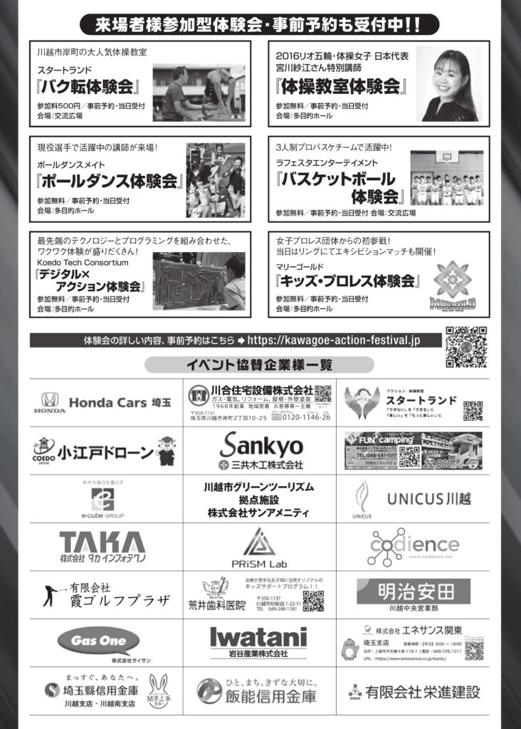 川越アクションフェイスティバルへのご出展、ご協賛、